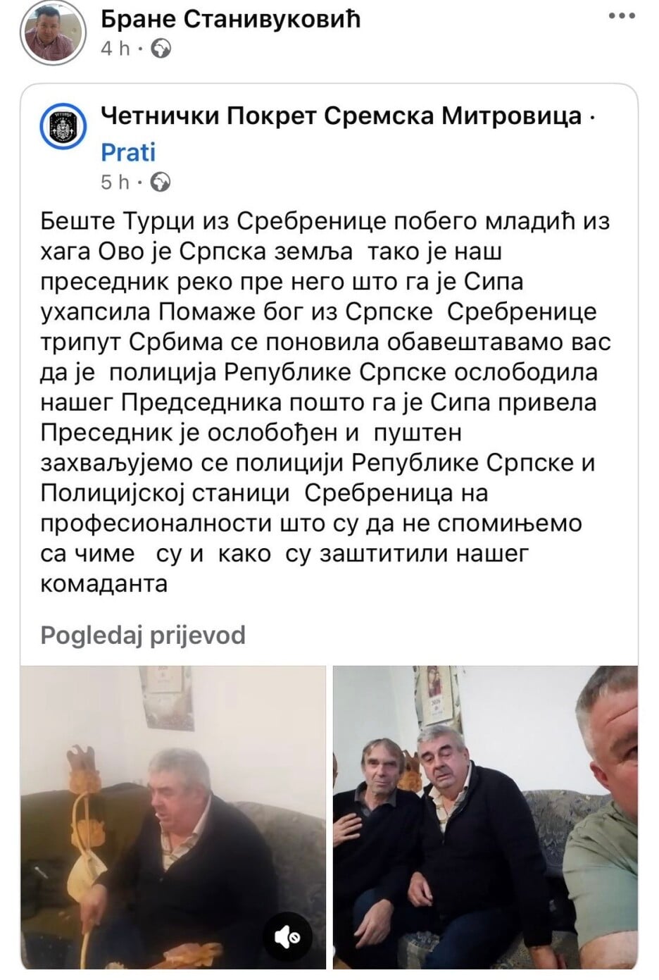 Naime, spomenuti Stanivuković, inače iz Sremske Mitrovice, zaustavio se kod samog ulaza u Memorijalni centar, na glavi je imao kapu šajkači sa kokardom te se fotografisao. Nakon što su ga uposleni, koji su ga primijetili, upozorili da ne može provocirati na taj način, počeo je s izgovaranjem uvreda uz povik da je to sve “srpska zemlja”.