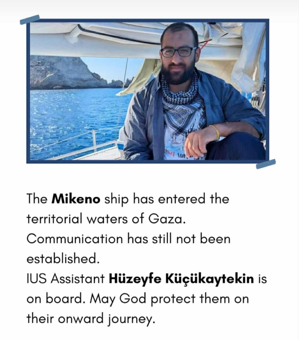 Na brodu Mikeno koji je prema posljednjim informacijama s radara ušao u teritorijalne vode Gaze, nalazi se i asistent na Internacionalnom univerzitetu u Sarajevu Muhemmed Huzeyfe Küçükaytekin (IUS).