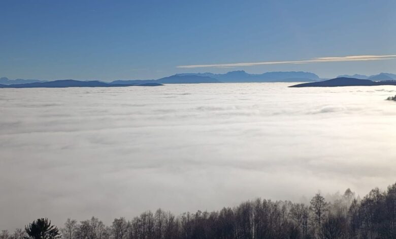 S nadmorske visine veće od 1.100 metara jasno se vidi kako sloj zagađenog zraka prekriva dolinu Drine, ostavljajući naselja ispod njega gotovo nevidljivima.