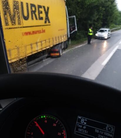 U ovoj saobraćajnoj nezgodi, koja se dogodila sinoć oko 20 sati, učestvovali su automobil Golf, koji je vozilo lice čiji su inicijali S. N. iz Zvornika i kamion Scania kojim je upravljao D. K. iz Srbije.