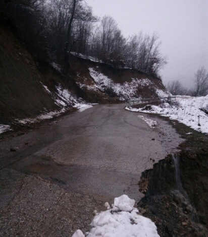 Klizište na putu Foča – Šćepan Polje, cesta napukla, velika provalija prema Drini