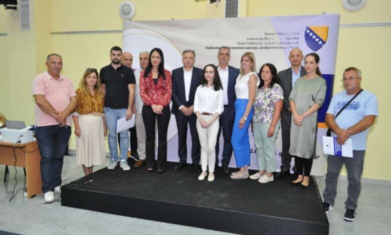 Federalno ministarstvo razvoja, poduzetništva i obrta potpisalo je u ponedjeljak u Mostaru s predstavnicima 96 preduzeća ugovore za poticaje malim i srednjim preduzećima.