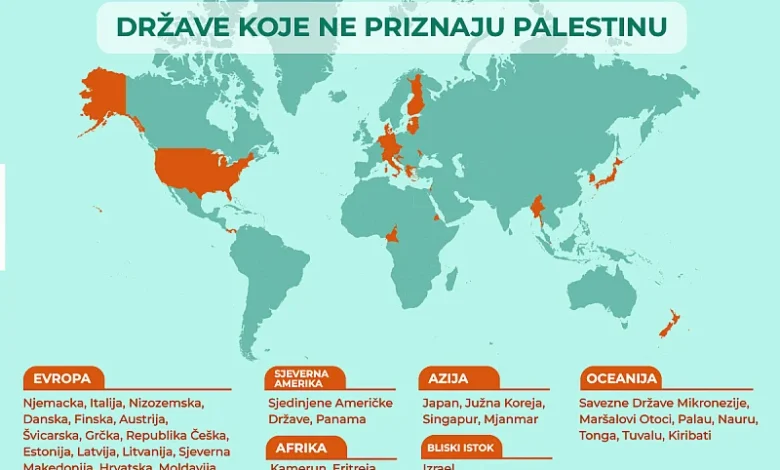 Ovo je mapa država koje još uvijek nisu priznale Palestinu: Osovinu čine SAD, Njemačka i Italija