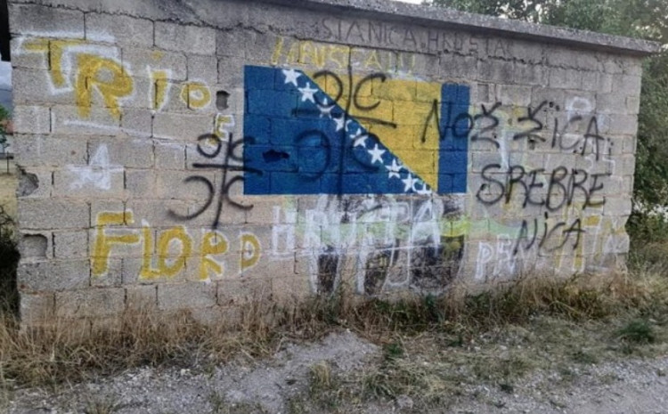 Nepoznati počinilac ili više njih ovu monstruoznu poruku sa srpskim znakovljem četiri C i križom ispisali su na ranije nacrtanoj državnoj zastavi. Povratnici u su u šoku i potpunoj nevjerici jer se vandalizmi ovakve vrste već duži vremenski period nisu dešavali na području Nevesinja.