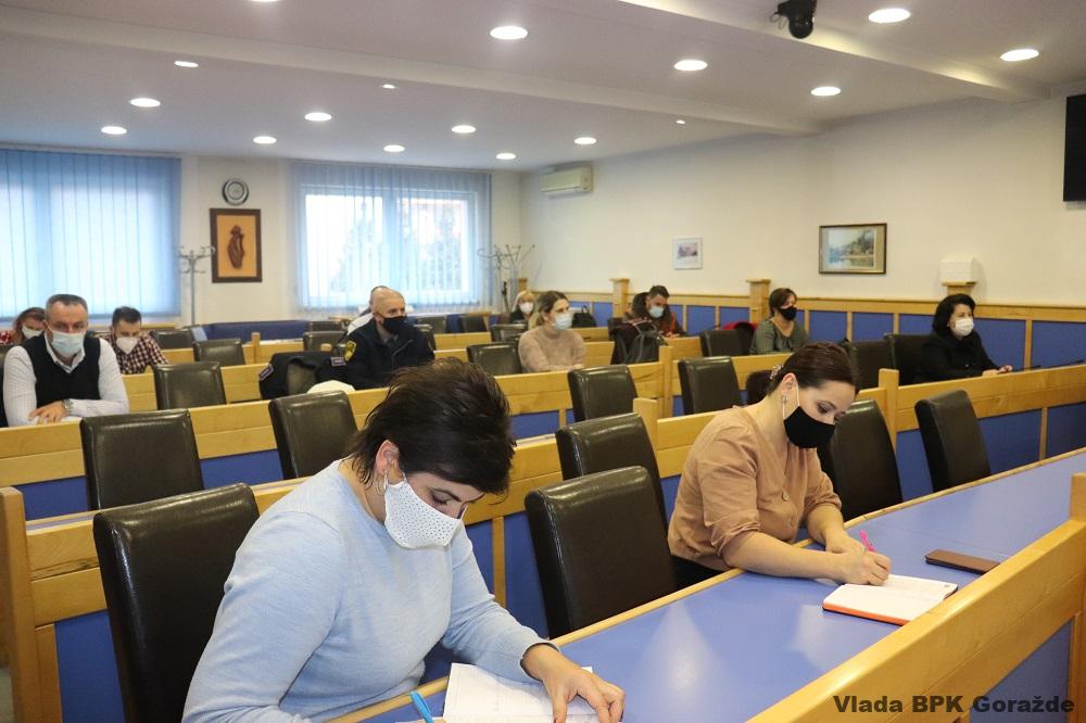 Na današnjem sastanku doneseno je nekoliko zaključaka. Jedan od njih je da se zadužuje Zavod za javno zdravstvo BPK-a Goražde i druge institucije i organi koji su zaduženi za provođenje naredbi, mjera i odluka u sprječavanju širenja pandemije korona virusa da se dosljedno primjenjuju sve naredbe i mjere , pojača kontrola provedbe istih, te da se dosljedno ispoštuju odredbe koje se odnose na „put pacijenta“ i hospitalizaciju pacijenata sa srednjim i težim simptomima korona virusa.