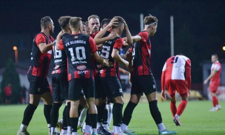 Tarik Kapetanović je načeo mrežu gostiju u 19. minuti, a prednost Slobode je duplirao Haris Dilaver osam minuta poslije.