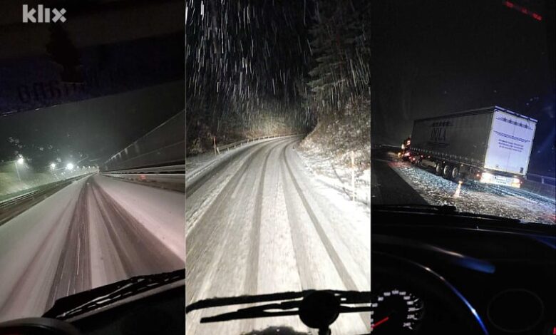Snijeg koji je u večernjim satima pao na području Bosne i Hercegovine napravio je probleme na nekoliko putnih pravaca.