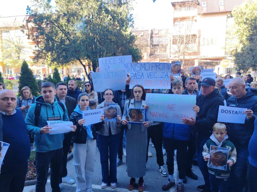 Okupljeni građani i mladi nose transparente s porukama: “Dosta je!” i “Tražimo odgovornost!”, “Ulice su za igru, a ne za strah”, “Nismo protiv pasa već za sigurnu djecu”, zahtijevajući hitna i konkretna rješenja za dugogodišnji problem pasa lutalica u gradu.