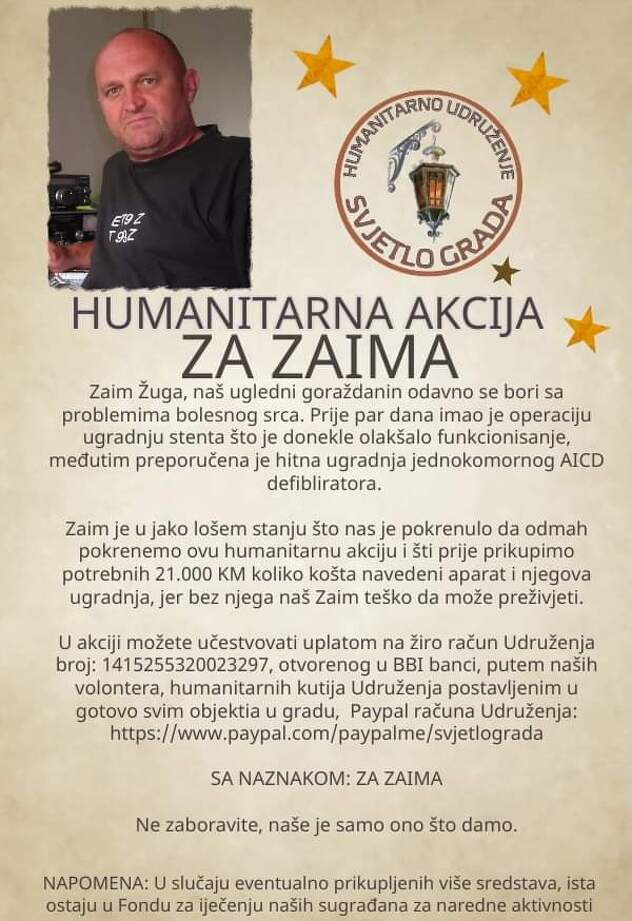 Humanitarno udruženje Svjetlo grada iz Goražda pokrenulo je akciju za pomoć Zaimu Žugi, poznatom goraždanskom radio amateru koji se već duže vrijeme bori sa bolešću srca.