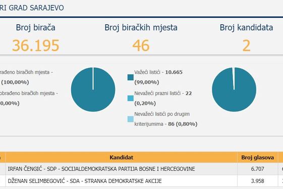 CIK objavio zvanične rezultate izbora u Starom Gradu: Čengić izgubio samo na dva biračka mjesta