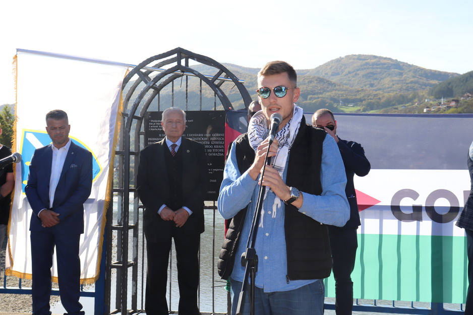 “Hvala svima, hvala Goraždu, Nikšiću, svima koji su danas sa nama i koji su digli glas razuma, glas mira da se zaustavi brutalna izraelska agresija koja traje već 25 dana na pojas Gaze i okupiranu teritoriju. Cijeli svijet nažalost gleda stradanje djece, žena i civila, do ovog momenta poginulo je više od 8.500 Palestinaca, više od 4.000 djece, desetine hiljada, je ranjenih, Izrael nastavlja s agresijom bez obzira na pozive i apele iz Međunarodne zajednice. Palestinski narod će istrajati i ima pravo na svoju odbranu i nezavisnu palestinsku državu. Iz ovog grada, sa ovog mosta šaljem poruku da je mir moguć i molimo američku administraciju i EU da provode rezolucije koje su nama nametnute”, poručio je između ostalog Madžid Maruf, predsjednik Palestinske zajednice u BIH.