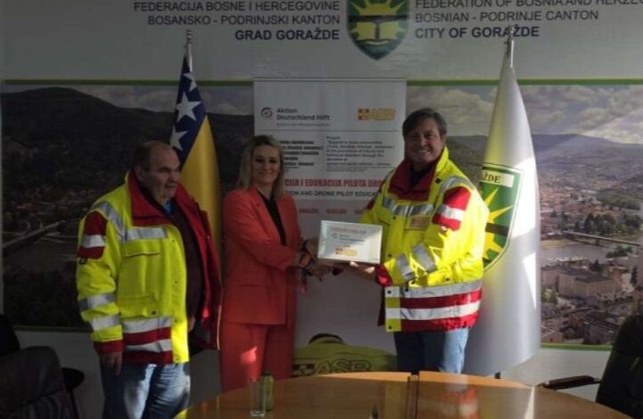 U okviru projekta “Pomoć lokalnim zajednicama u prevenciji prirodnih i tehničkih katastrofa donacijom bespilotnih letjelica – dronova“, u Goraždu je uspješno realizovana obuka upravljanja bespilotnim letjelicama.Obuku su uspješno savladali predstavnici Gradske uprave, Adisa Borovac ispred Odsjeka za civilnu zaštitu te Ermin Džambegović i Adis Živojević iz Profesionalne vatrogasne jedinice (PVJ) Goražde.