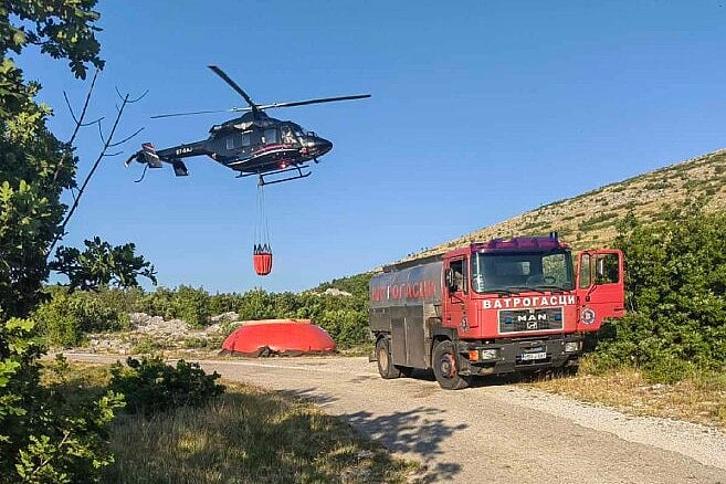 Gašenje požara otežavaju jak vjetar, velika uzbrdica, težak teren i suša.