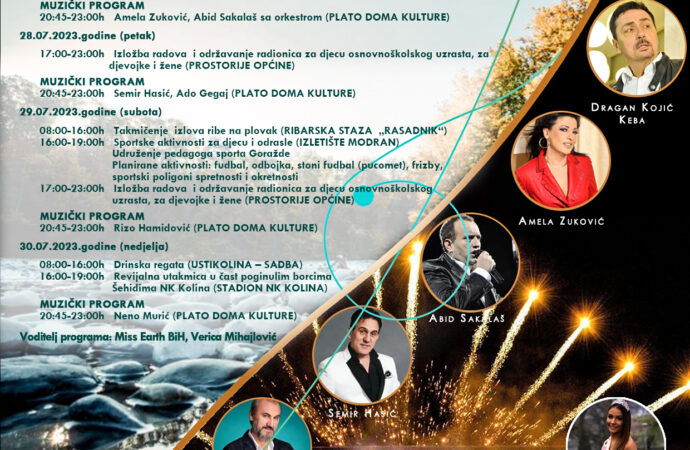 Publiku će svake naredne večeri zabavljati brojna estradna imena poput Amele Zuković, Abid Sakalaš, Semir Hasić, Riza Hamidovića, Nena Murića, a programom su predviđeni I drugi događaji